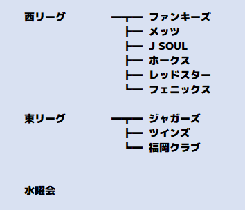 リーグの紹介ページでも説明しましたが、リーグでもチームでもない、20人くらいの団体。