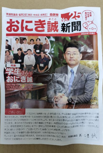 鬼木さんの広報誌「おにき誠新聞25号」です。